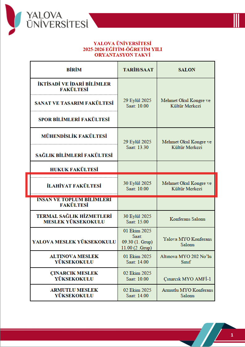 İlahiyat Fakültesi için 30 Eylül 2025 saat 10:00'da Mehmet Okul Kongre ve Kültür Merkezi'nde program düzenlenecektir.