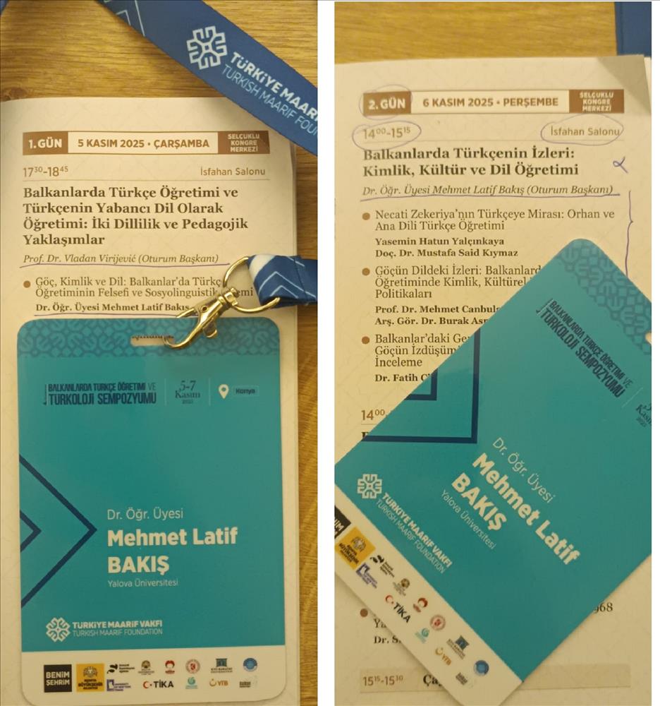 Türkiye Maarif Vakfı öncülüğünde, çeşitli kurum ve üniversitelerin iş birliğiyle düzenlenen Uluslararası Balkanlarda Türkçe Öğretimi ve Türkoloji Sempozyumu’nun dördüncüsü bu yıl Konya’da yapıldı. Sempozyuma fakültemiz öğretim üyelerinden Dr. M. Latif Bakış da “Göç, Kimlik ve Dil: Balkanlarda Türkçe Öğretiminin Felsefi ve Sosyolinguistik Önemi” başlıklı bir tebliğ ile katkı sundu. Başka oturumlarda ayrıca başkanlık yapan Dr. Bakış, Balkan coğrafyasında yaşayan Türk ve Müslüman nüfusun Türkçeyi daha etkin kullanmalarının önemini aidiyet, kimlik oluşumu, kültürel ve varoluşsal devamlılık bağlamında kritik etti. Ayrıca mevcut sosyopolitik süreçlerin neden olduğu problemlere de değinen Bakış, somut çözüm önerileri getirerek söz konusu önemli organizasyona katkı sundu.